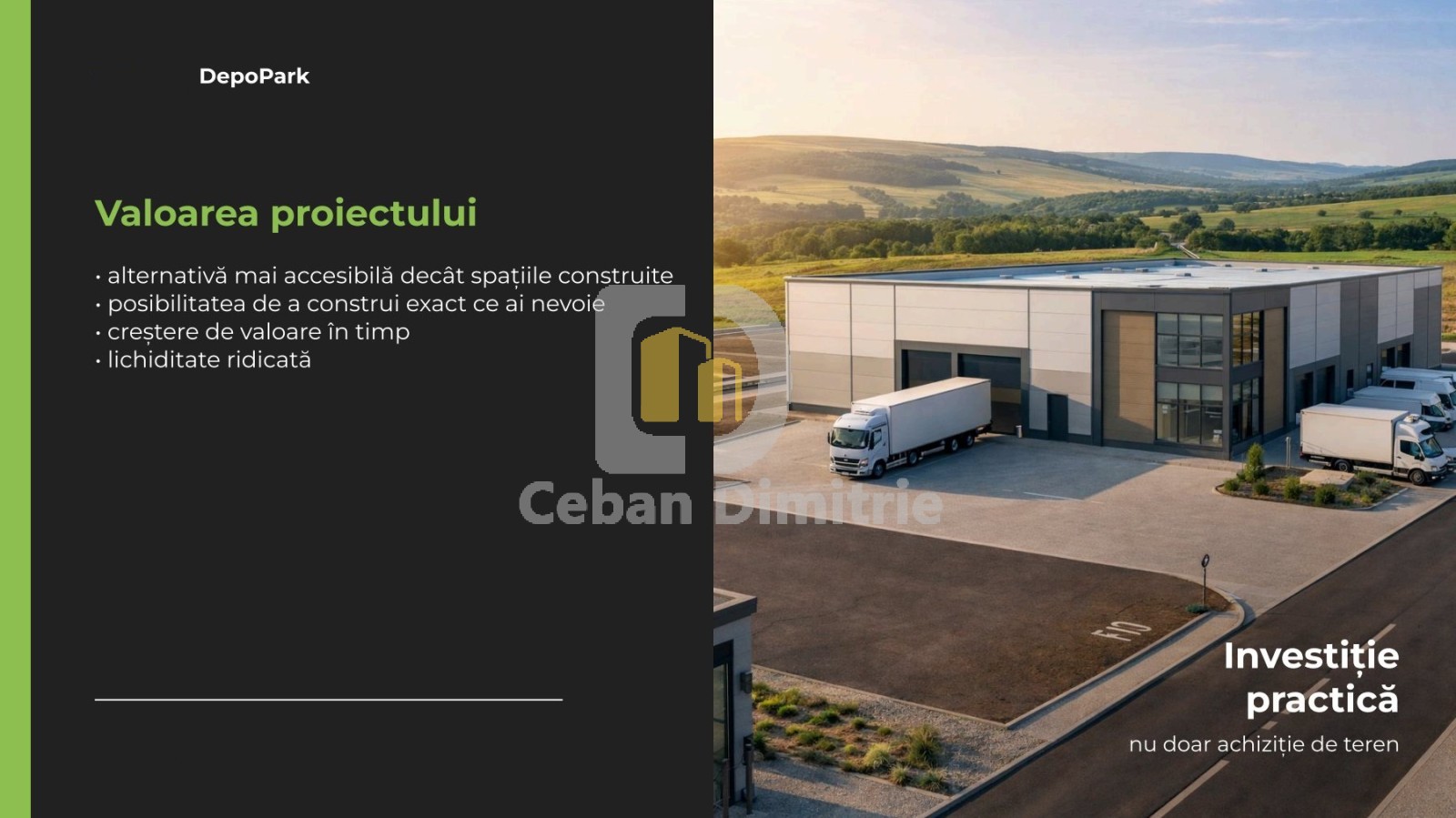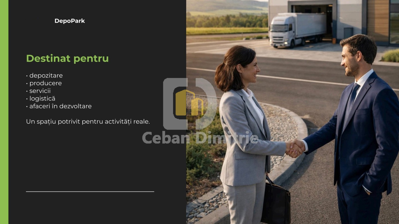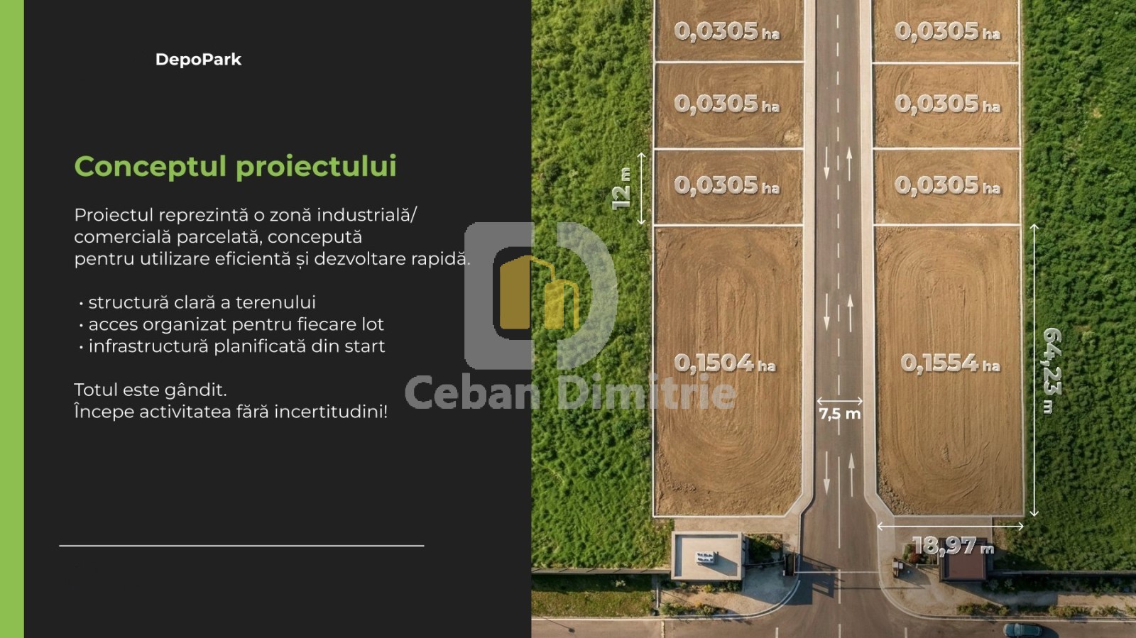 Se oferă spre vânzare loturi de teren destinate dezvoltării industriale și logistice, în cadrul proiectului DepoPark – un parc industrial modern, în curs de dezvoltare, amplasat strategic în zona Uzinelor – Industrială / Lunca Bîcului.