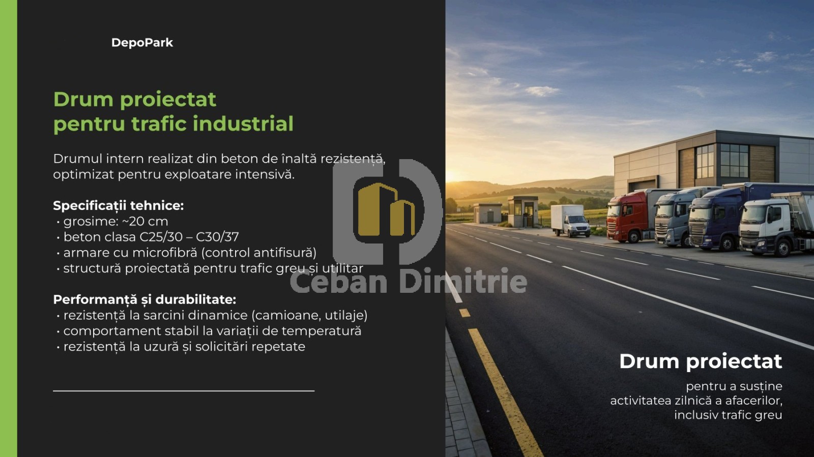 🚛 Drum proiectat pentru trafic industrial: